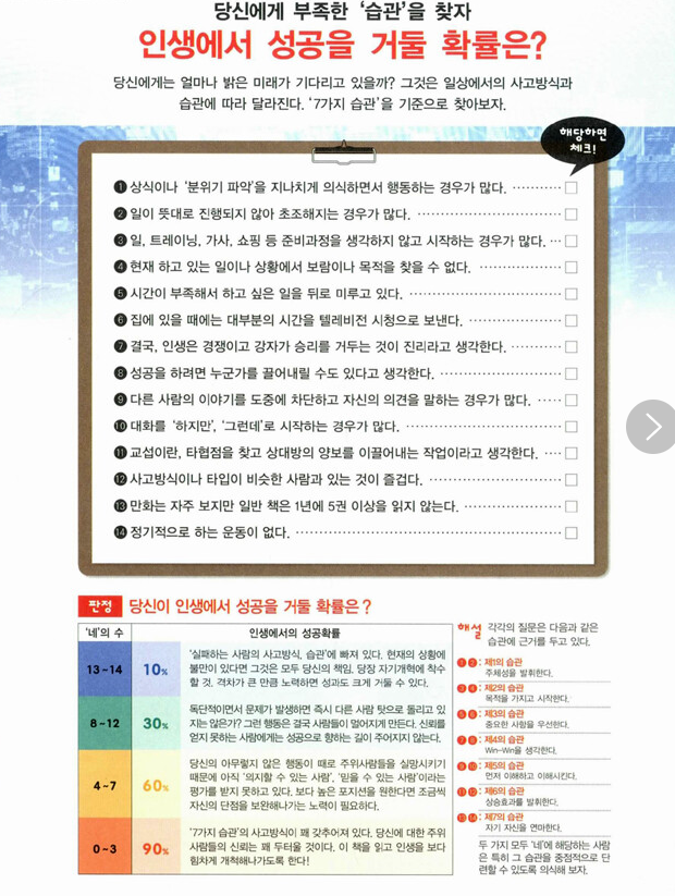 사람은 누구나 성공을 하고 싶어하고, 자기경영을 하는 이유도 성공을 위해서입니다. 성공의 기준이 사람마다 다르기는 하지만, 일반적으로 자신이 하는일과 사업, 가정, 직장, 사회 등에서 누구나 인정받는 사람이 되는 것이 성공의 기준이 아닐까 생가합니다. 앞으로 총 10회에 걸쳐서 인생을 살면서 성공과 자기경영을 위해 꼭 읽어봐야할 책을 선정하여 정리해 드릴까 합니다. 성공을 위해서는 좋은 습관을 가져야 한다고 말합니다. 그렇다면 성공하는 사람들은 어떤 습관을 가지고 있을까? 궁금하지 않으신가요? 이번 시간에는 성공을 위한 바이블이라고 할 수 있는 스티븐 코비의 '성공하는 사람들의 7가지 습관'에 대해서 정리해서 알려드리고자 합니다.